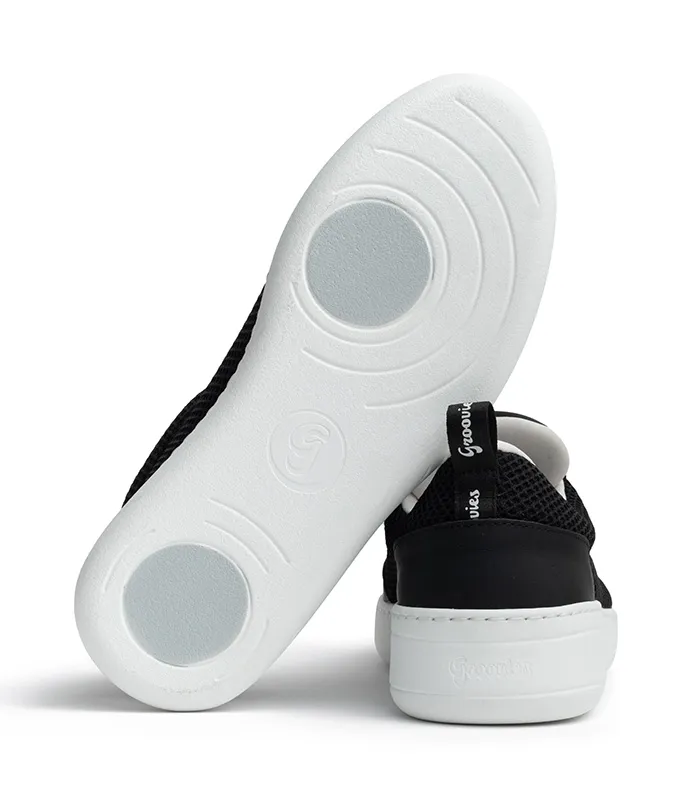 Groovies Oporto – czarne sneakersy ze skóry i siateczki, stworzone dla tancerzy i aktywnych. Lekkie, przewiewne, z punktami obrotu i anatomiczną wkładką. Komfort, styl i swoboda ruchu w jednym.